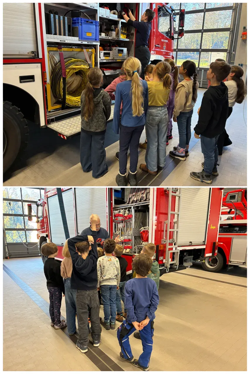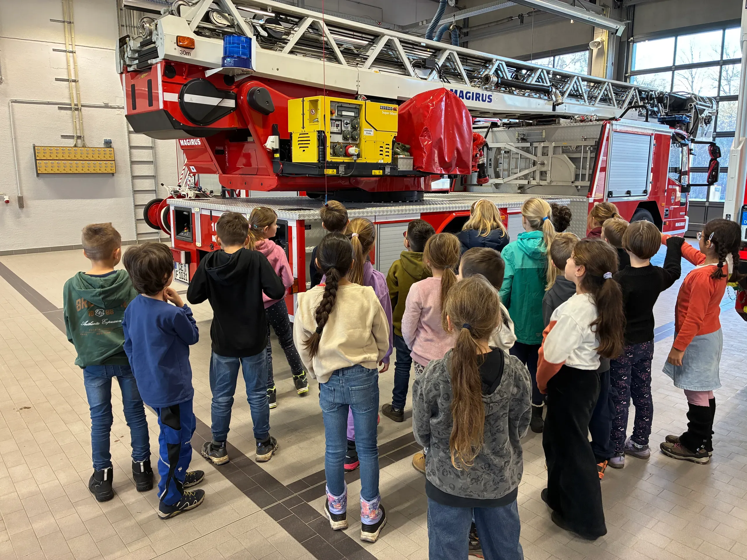 Im Sachunterricht behandelte die Klasse das Thema Feuer und Feuerwehr. Zum Abschluss des Themas besuchten die Schülerinnen und Schüler die Celler Hauptwache der Freiwilligen Feuerwehr. Bei einer 1,5-stündigen Führung wurden die im Unterricht behandelten Inhalte vertieft, die Ausrüstung der Feuerwehr erklärt und die Feuerwehrautos in der Halle vorgestellt. Ein spannender und lehrreicher Vormittag!
