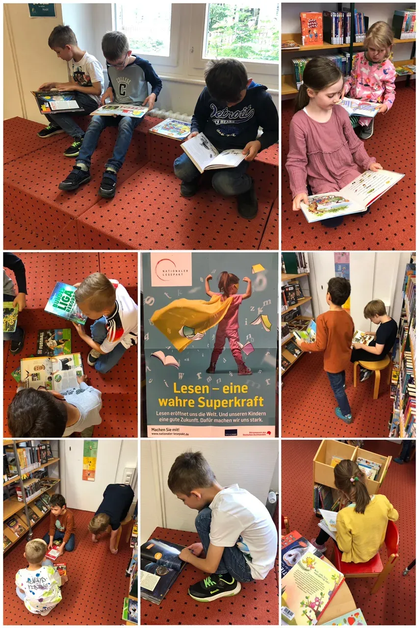 Der Besuch der Stadtbibliothek ist seit jeher ein fester Bestandteil des Unterrichts. Die Kinder erhalten Zugang zu Büchern, Geschichten und vielfältigen Medien, wodurch die Freude am Lesen gefördert wird.