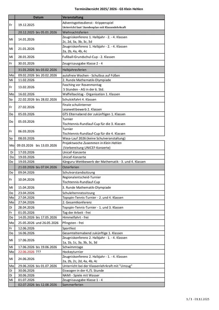 Das Schuljahr wird an unserer Schule zum Schuljahresbeginn strukturiert. Der Terminkalender bietet einen Überblick und steht unter Vorbehalt. Die Termine werden verbindlich mit der Einladung.