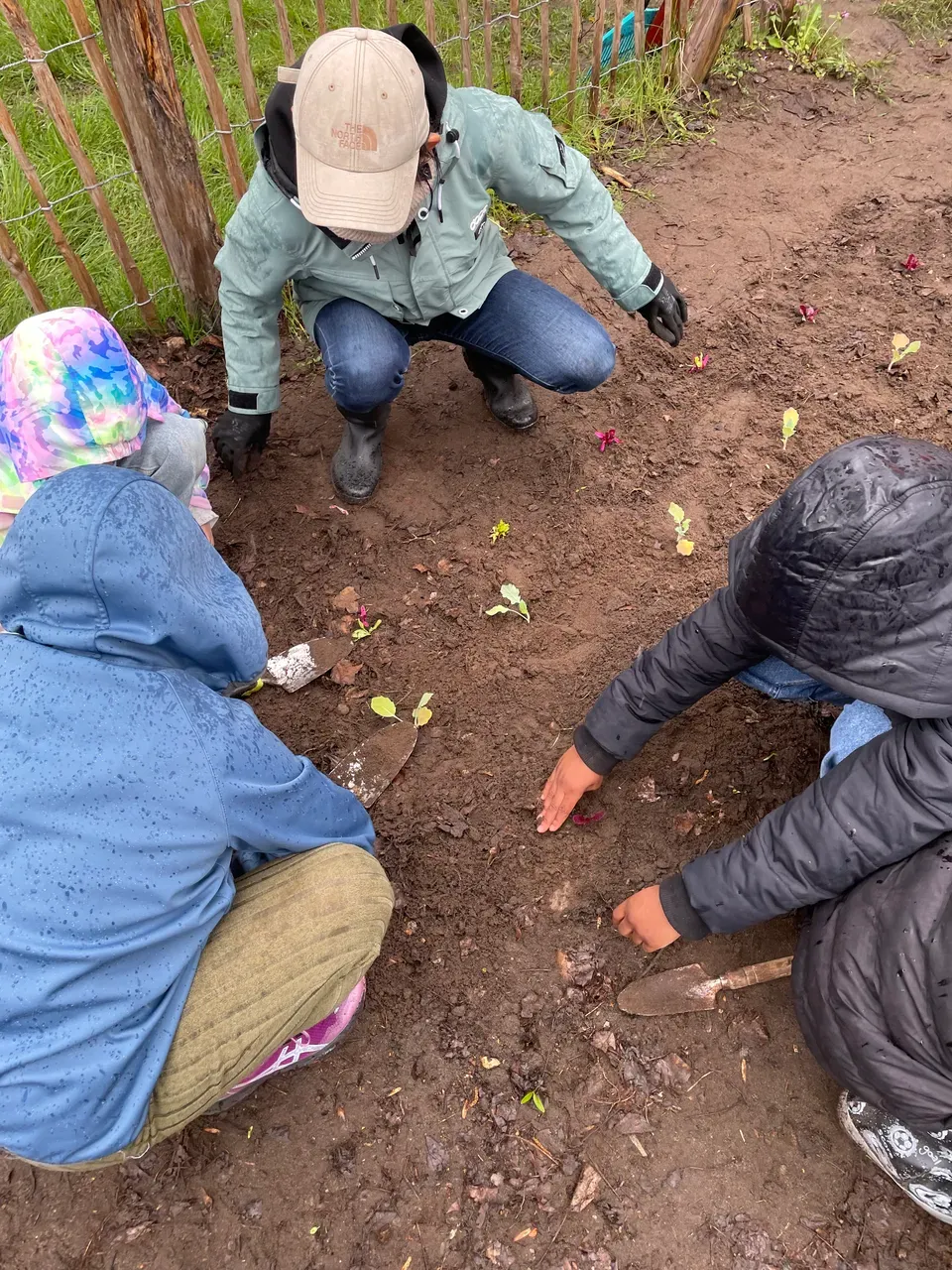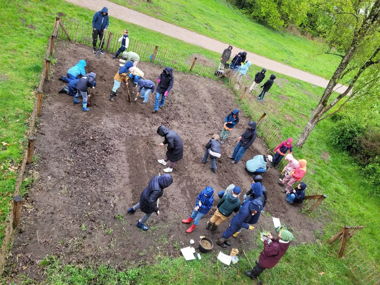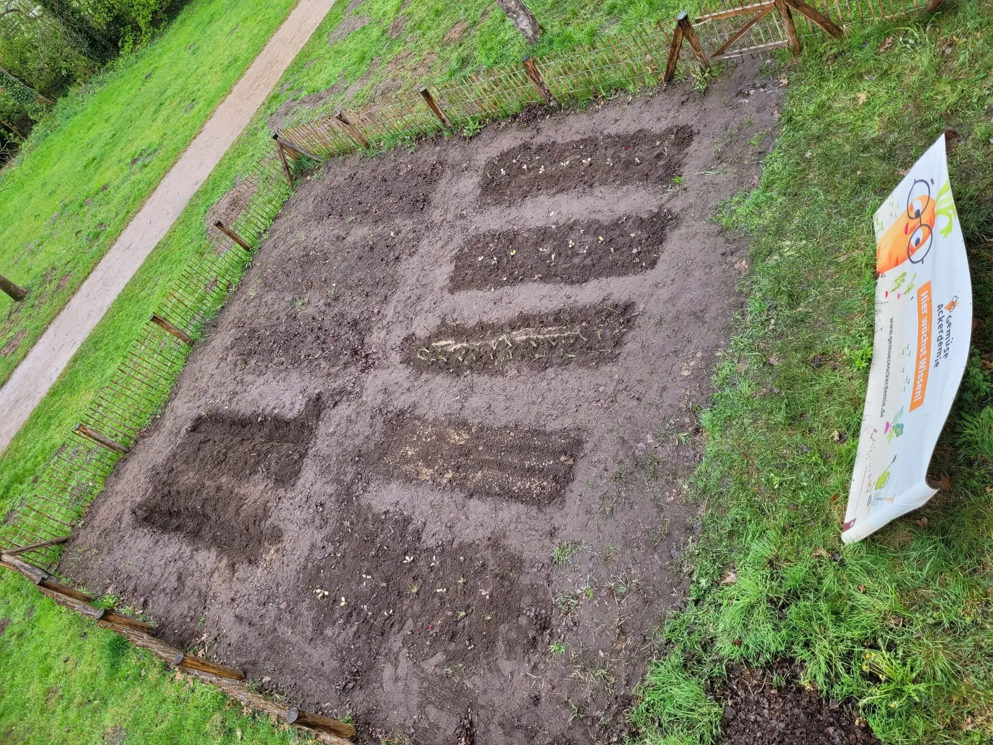 Am 20.4. haben die Klassen 3b und 3c mit tatkräftiger Unterstützung einiger Eltern und dem Ackercoach von Acker e.V. die Ackersaison nun so richtig eröffnet. Es wurde dem regnerischen Wetter und den kühlen Temperaturen getrotzt und fleißig gepflanzt und gesät. Kartoffeln, Bete, Palmkohl, Mangold, Kohlrabi, Frühlingszwiebeln und Romanasalat haben ihren Weg in die Erde genauso gefunden wie Kresse, Radieschen, Rauke, Möhren, Schwarzwurzel und Gemüsezwiebeln. Nun heißt es regelmäßig gießen, hacken und anhäufeln, bis die erste Ernte ansteht.