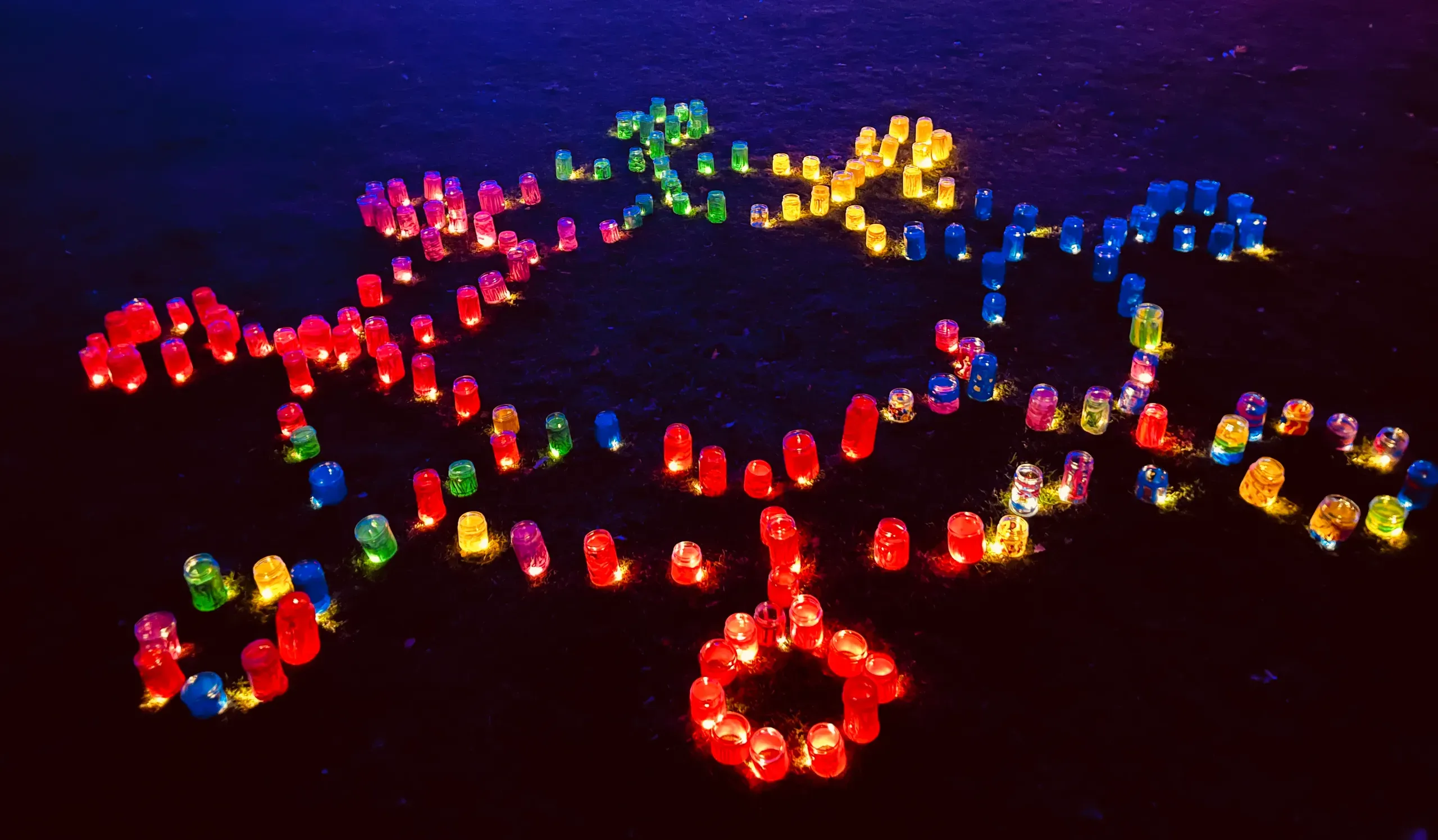 Organisiert durch das schulsozialarbeiterische Pausenprojekt „Kreativ & Aktiv“ bemalten rund 80 Schülerinnen und Schüler aus allen 14 Schulklassen ca. 180 Gläser in den schönen Farben der Polarlichter.